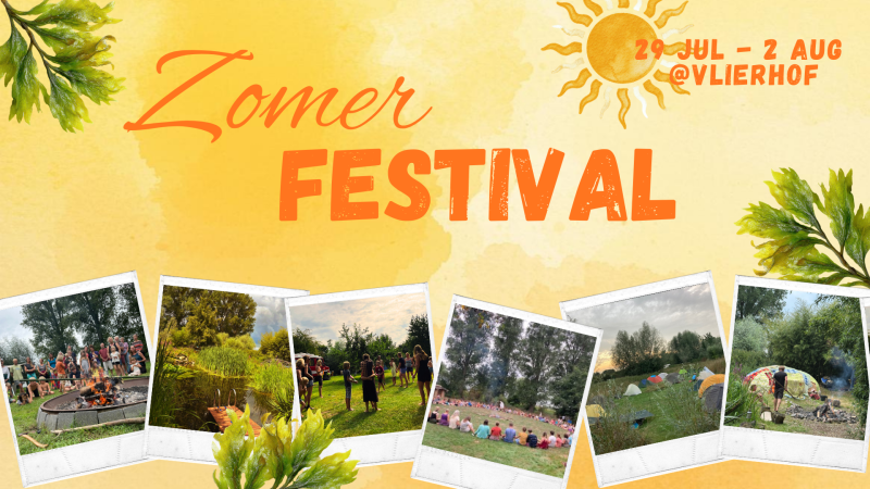 Van 29 juli t/m 2 augustus 2026 openen we opnieuw onze harten en onze poort voor het jaarlijkse Zomerfestival @Vlierhof. Een week waarin we samenkomen om te spelen, bloeien, ontspannen, verbinden en genieten op een plek waar niets hoeft en alles mag ontstaan.